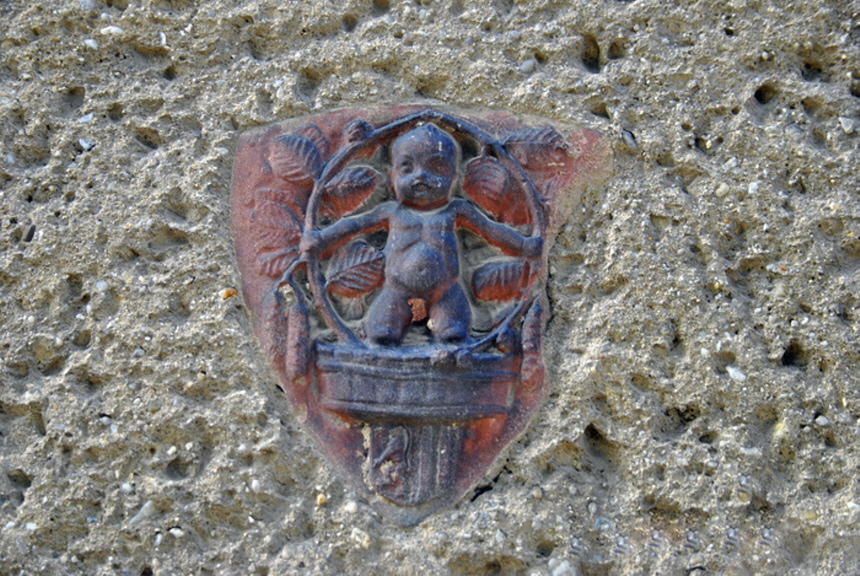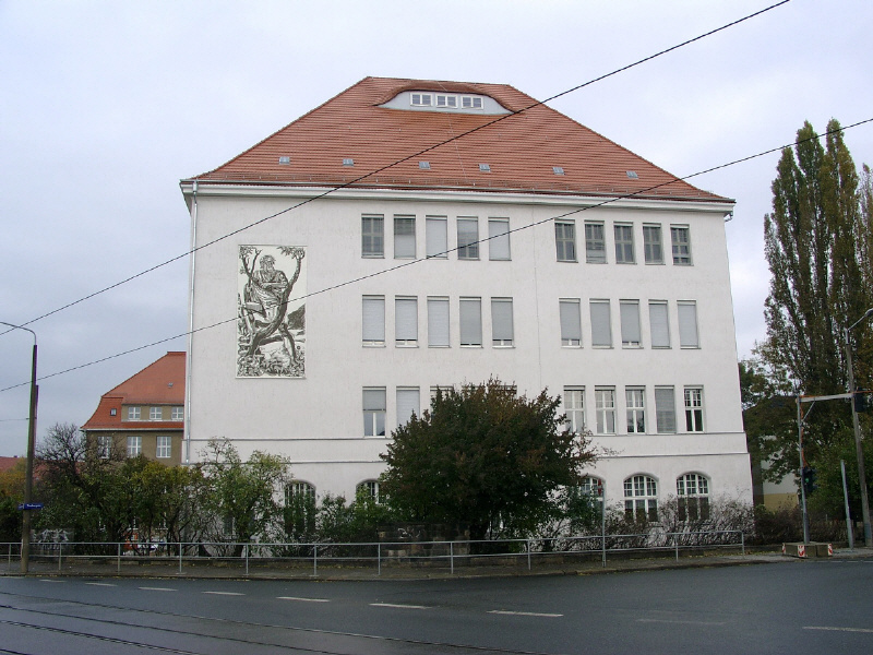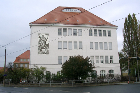Diese Plakette befindet sich an der Fassade neben dem Haupteingang. Ein solches Erkennungszeichen gibt es an jedem Erlwein-Gebäude. (Zum Vergrößern bitte über das Bild fahren!)